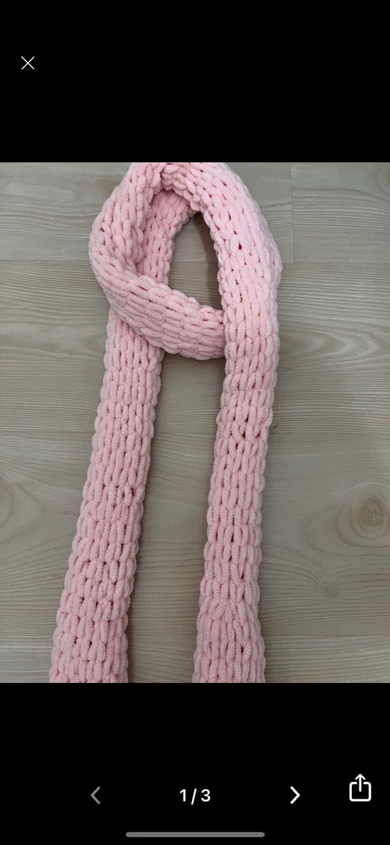 Pastel pembe renkte, örgü kumaştan yapılmış, sade ve rahat tarzda kadın şalı. El orgusu
