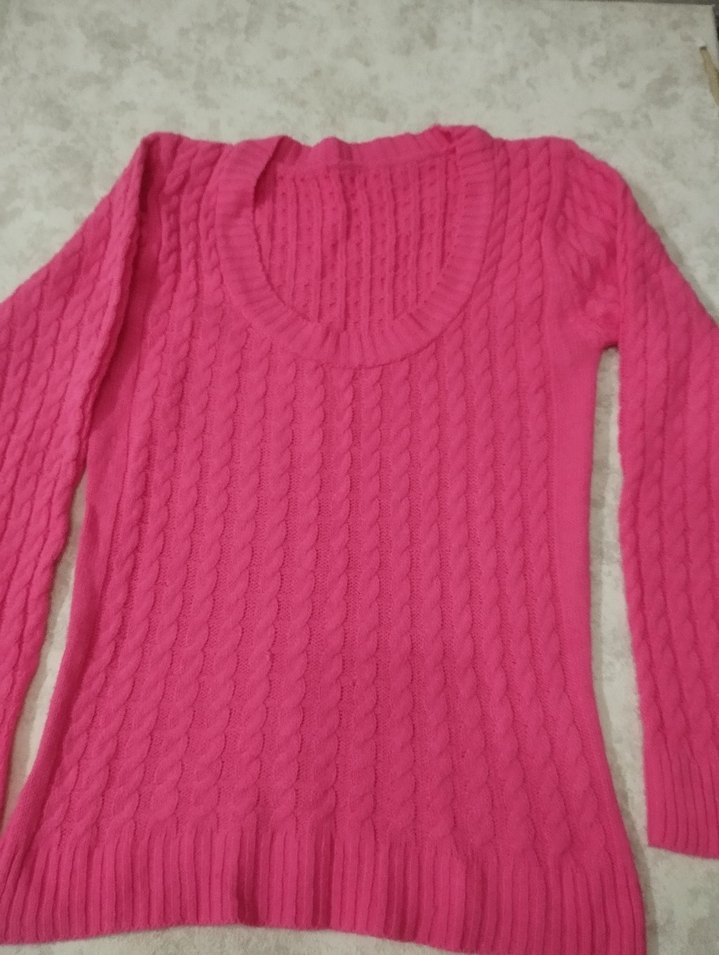 Pembe renkli, uzun kollu ve yuvarlak yakalı örgü kadın triko kazak. İnce kesimi ve normal midi boyuyla günlük kullanıma uygundur. Rahat ve renklidir.