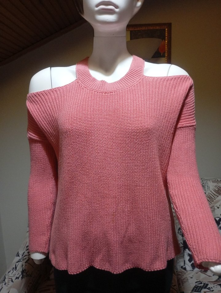 Pembe renkli, örgü dokulu, yuvarlak yaka ve uzun kollu triko kazak. Rahat, bol kesimi ve modern tarzıyla günlük kullanım için uygundur m beden