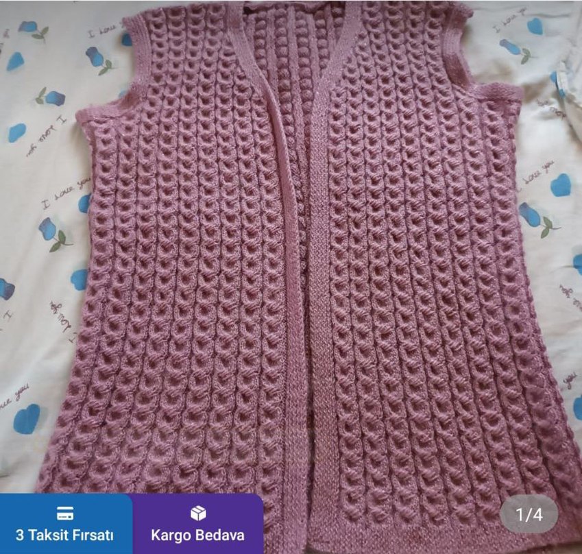 Pembe örgü kadın yelek, V yaka ve kolsuz tasarıma sahiptir. Bol kesim ve midi boyda, rahat bohem stil için uygundur. Yumuşak örme kumaştan yapılmıştır. Kargo bedava.