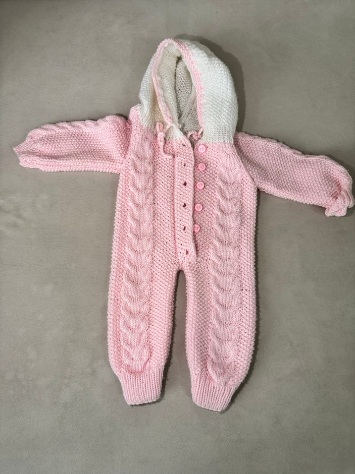 Pembe Örgü Kapüşonlu Bebek Tulum