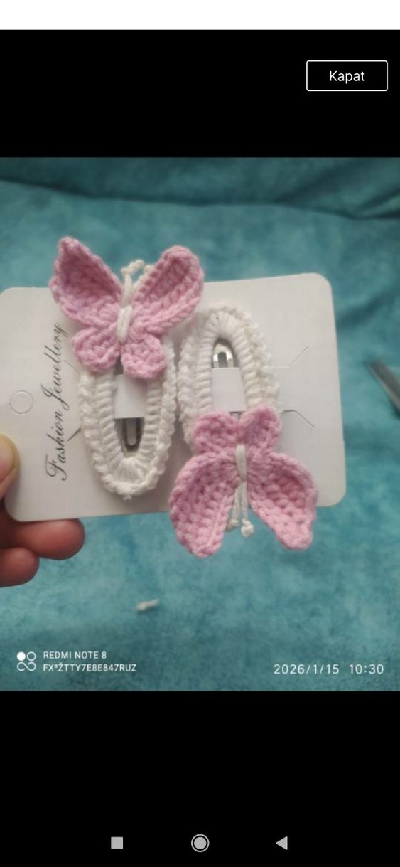 Pembe Örgü Kelebekli Çocuk Toka Seti