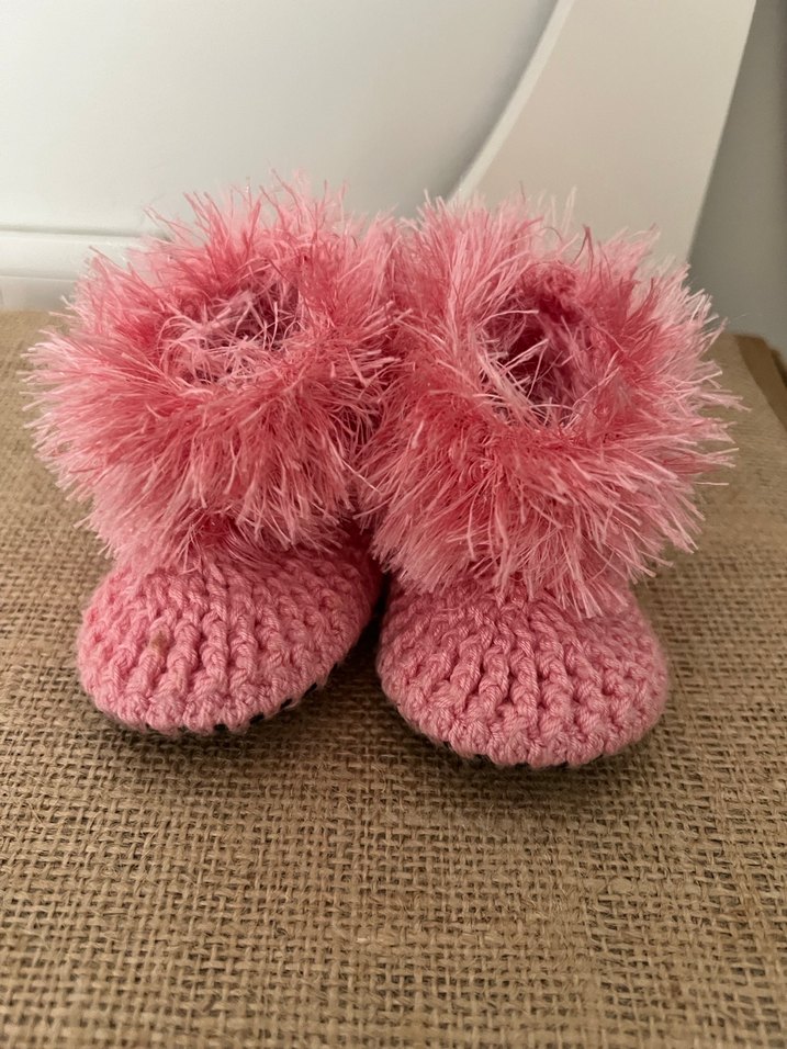 Pembe örgü kız bebek pandufu, yumuşak ve tüylü detaylarla bohem tarzda tasarlanmıştır. Küçük ayaklar için konforlu ve sıcaktır. Kızıma hediye olarak geldi küçük olduğu için giydiremedim
