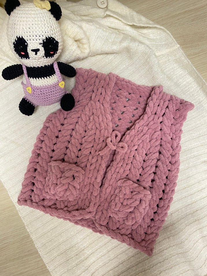 Pembe Örgü Kız Çocuk Bohem Yelek