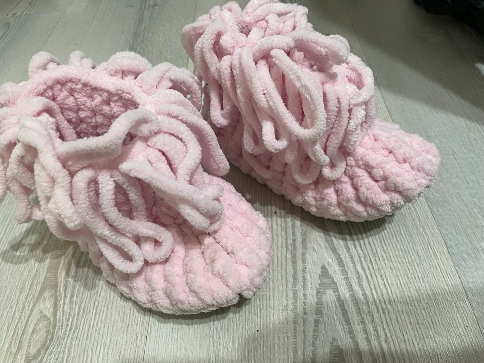 Bohem tarzda, pembe örgü kız çocuk ev terliği. Benzersiz halkalı dokusu ile sıcak tutar ve şık görünür. 25 e 26 27 bile olabilir hiç kullanılmadı
