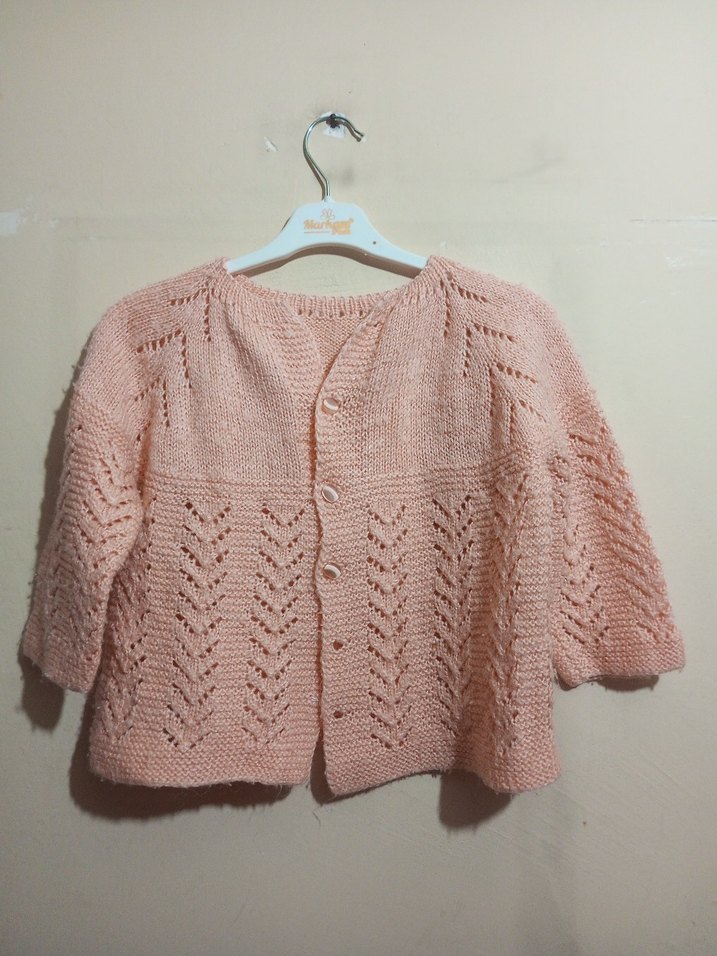 Pastel renkli, uzun kollu, örgü kız hırkasıdır. Düğmeli ve rahat kesimlidir, yumuşak dokudadır. Sadece altan 2 düğmesi kopmuş, dikemedik çünki kayıp. 4-5 yaşa uygun.