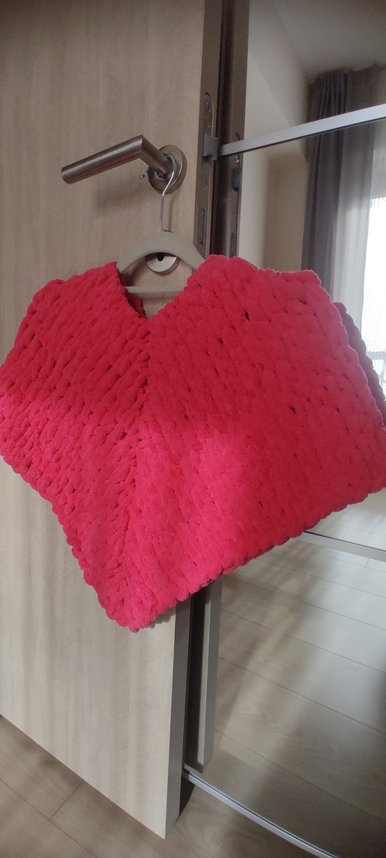 Pembe renkte, örgü kız panço. 3-4 yaş çocuğa uygundur. Düz ve renkli görünüme sahiptir.