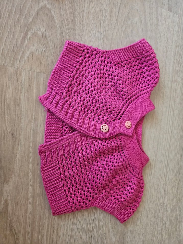 Pembe renkte, örgü dokulu, askılı ve fitted kesim bohem tarzı kız süveteri, düğme detaylıdır. Hiç giyilmedi sorunsuz lekesiz bolero