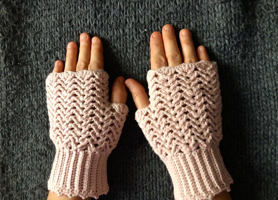 Pembe Örgü Parmaksız Kadın Eldiveni