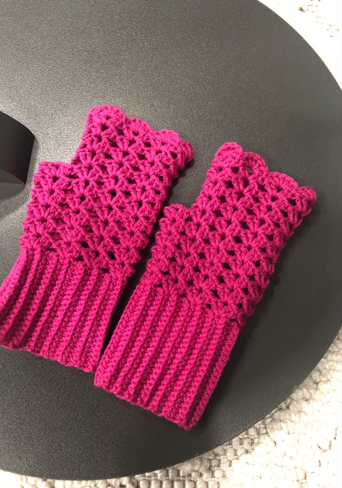 Pembe Örgü Parmaksız Kadın Eldiveni