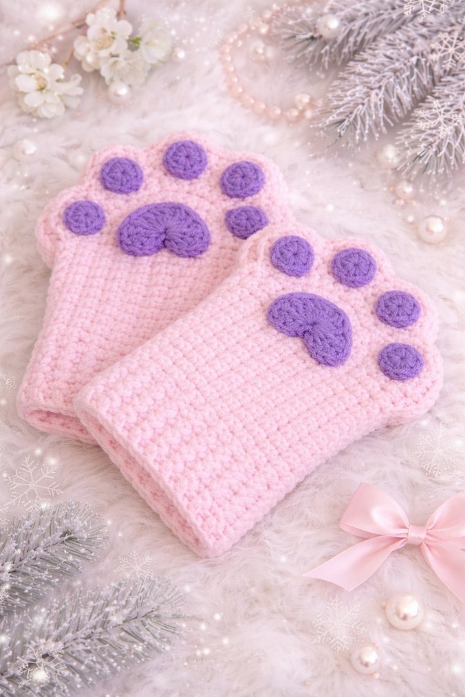 Pembe-Mor renk pati eldiven.@minies.atelier #kedi#pinterest#kış#coquette#hellokitty#crochet#örgü