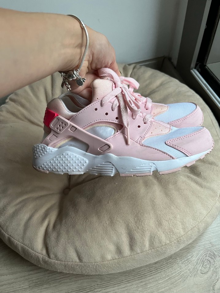 Pembe bağcıklı spor ayakkabı NİKE HUARACHE ORJİNAL , 1 kez giydim yeni aldım fazlalıktan satıyorum zararına. 38.5 yazıyor ama 36-37 ye anca olur çok dar kalıp.