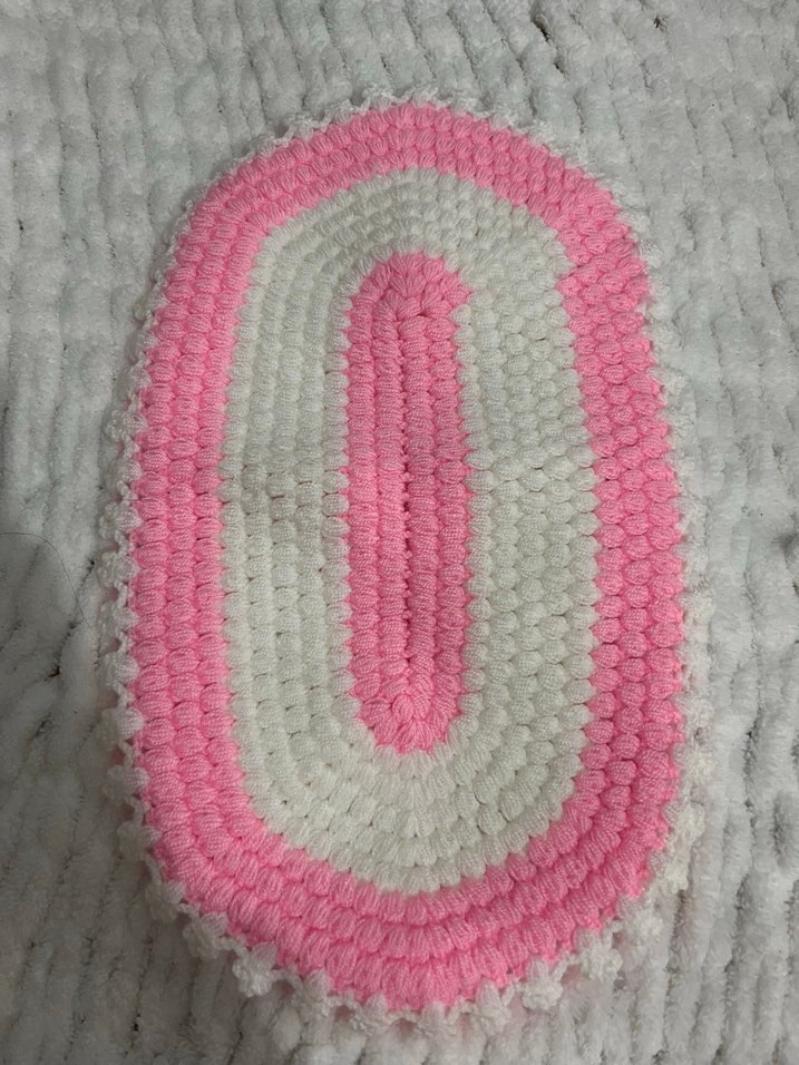 Renkli pembe ve beyaz oval banyo lifi, nazik temizlik için dokulu yüzeye sahip. Ürün sıfırdır