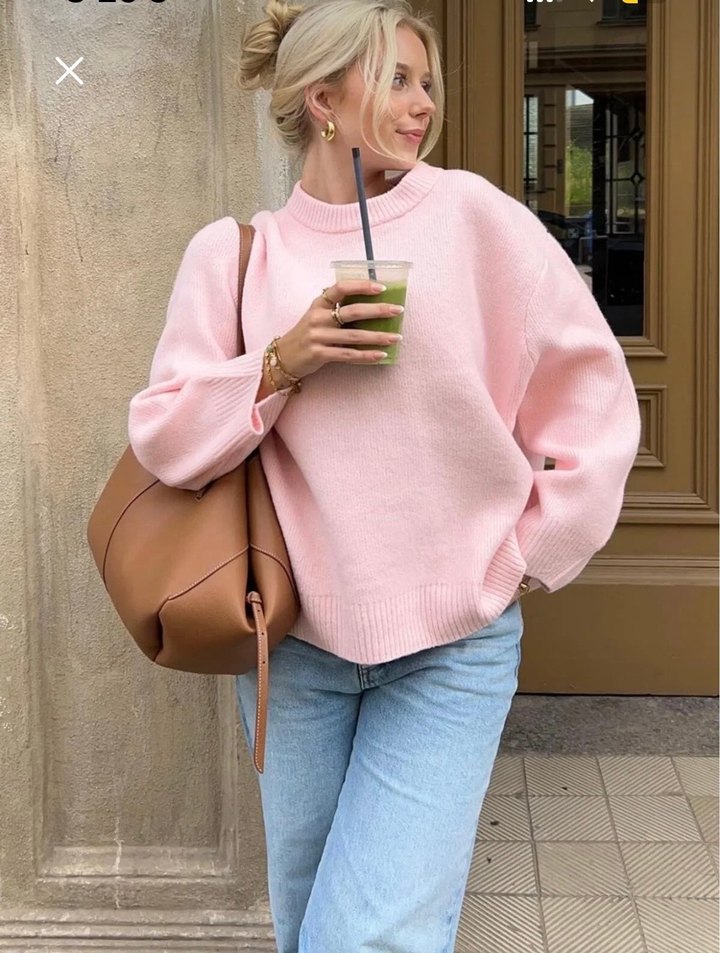 Pembe oversize triko kazak, bisiklet yaka ve uzun kollu. Günlük kullanıma uygun rahat ve sıcak bir görünüm sunar. Pastel tonu sokak stiline yumuşaklık katar. Hiç giymedim
