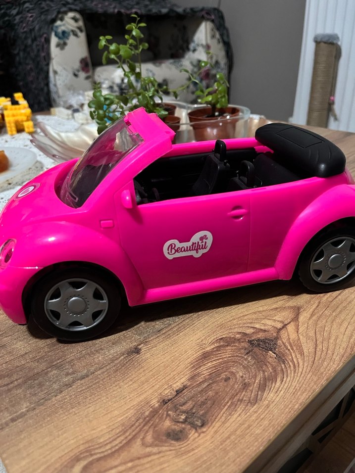 Pastel tonlarda küçük bir araç. Üstü açık yada kapalı kullanılabilir tertemiz, içine led geçirip düğme koyduk farları da ışıklı oldu