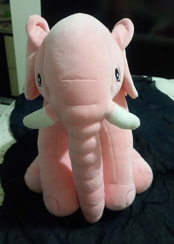 Pembe,yumuşacık kadifemsi tüylü,etiketli oyuncak fil