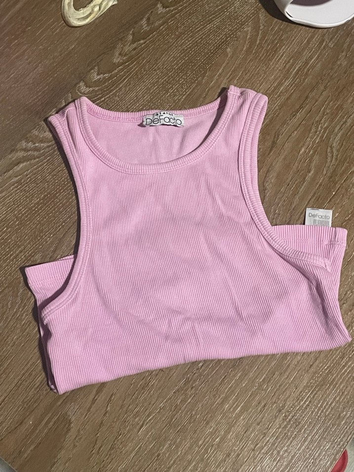 Pastel pembe renkte, pamuklu kumaştan yapılmış, straplez yakalı ve dar kesim atletidir.