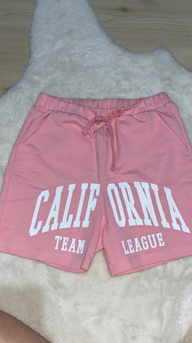 Baskılı "CALIFORNIA TEAM LEAGUE" yazılı, bol kesim pembe pamuklu midi spor şort. Lastikli bel ve yan cepler bulunur. Rahat ve şık.