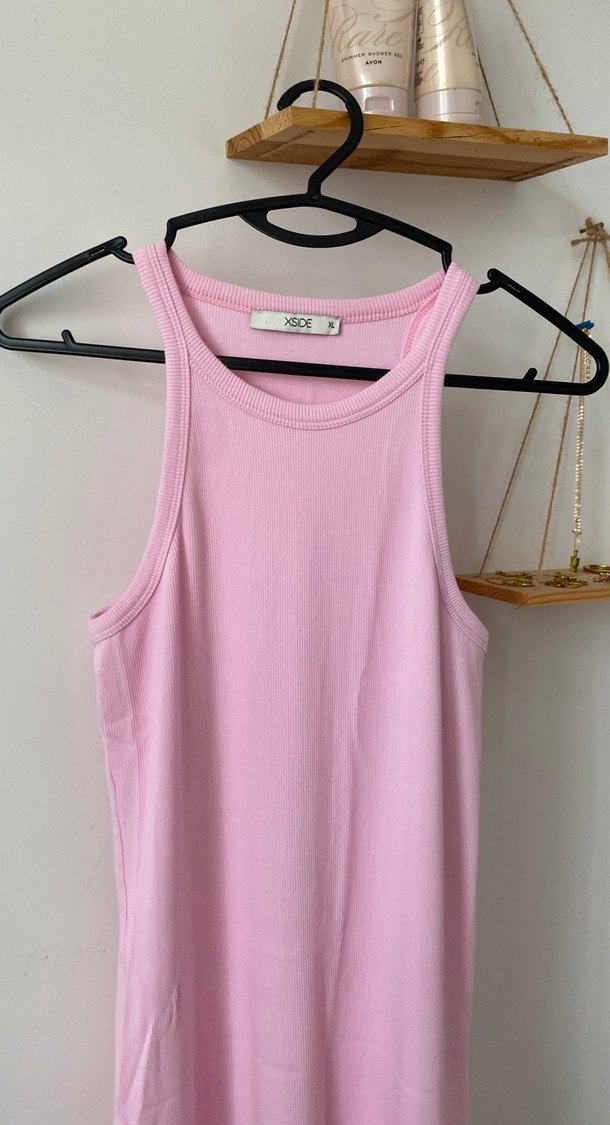 Pembe renkte, yüksek yakalı ve kolsuz bu atlet, pamuklu yumuşak kumaştan üretilmiş olup, normal boyda ve vücuda oturan kesime sahiptir.