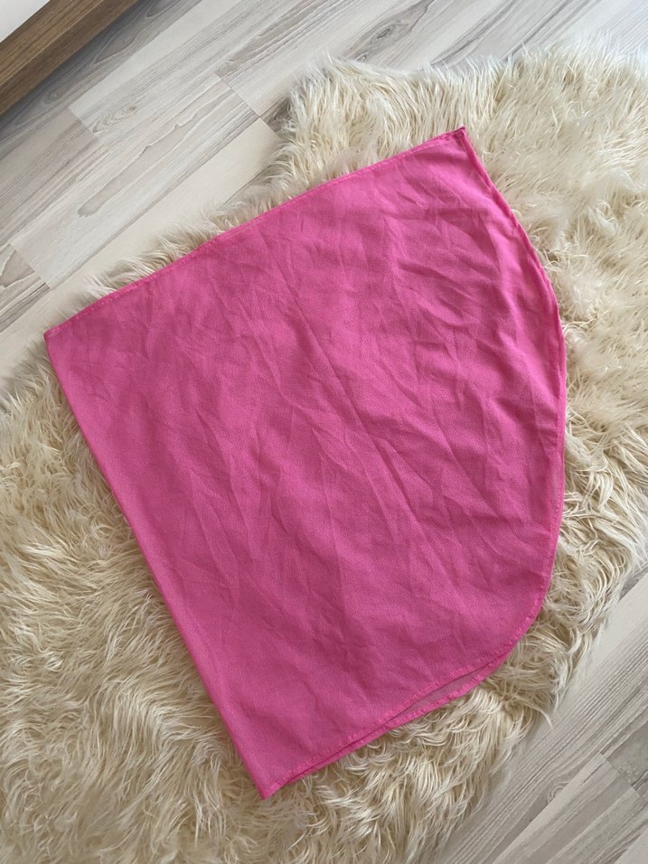 Ufak bir defosu vardır fakat pareo olarak bağlanıldığında gözükmemektedir delikli bir kumaşa sahiptir sıfır modeldir s m l bedene kadar uyum sağlamaktadır