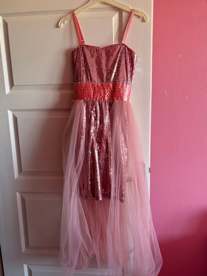 Pembe Parlak Askılı Drapeli Kız Elbisesi