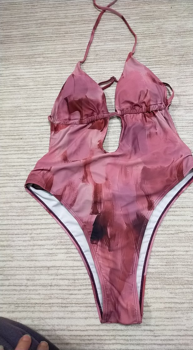 Parlak pembe bağlamalı desenli, transparan detaylı, vücuda oturan kadın mayo. Orta boy kesimiyle plajda dikkat çeker. Bohem ve athleisure tarzında.