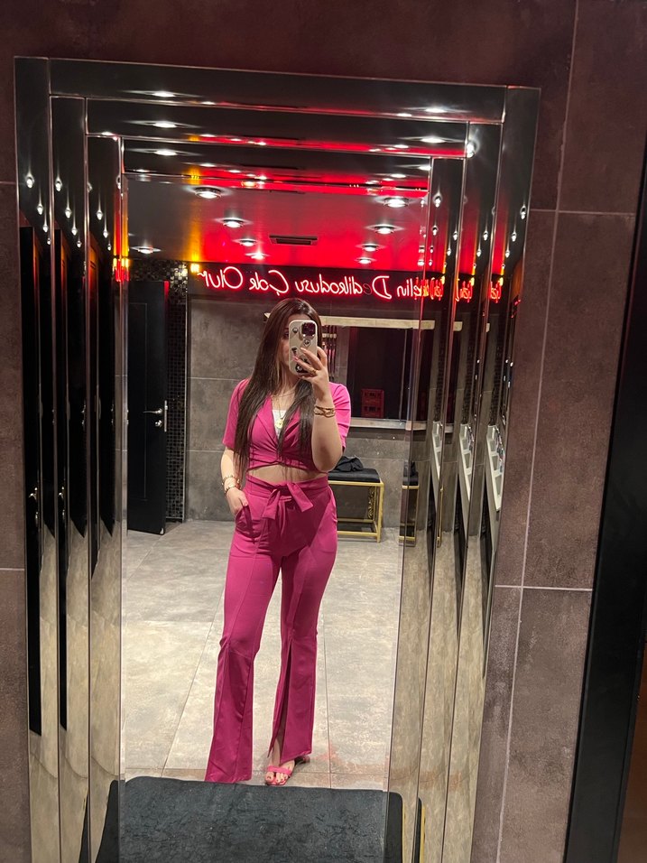Pembe Parlak Bağlamalı V Yaka Kadın Takım