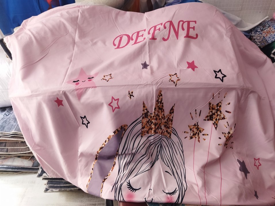 Parlak pembe renkte, yıldız desenli ve prenses figürlü çocuk battaniyesi. Üzerinde "DEFNE " yazısı bulunmaktadır. ️İsimli olduğu için uygun fiyatlı