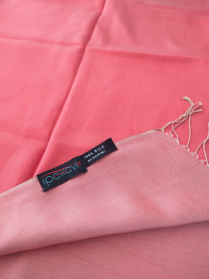 Kadınlar için drapeli, parlak pembe ipekten yapılmış şal. 'ipckevi' markalı, bohem Paris tarzını yansıtır.