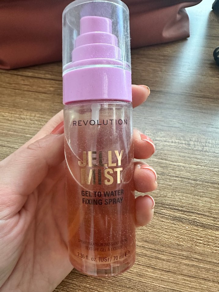 Revolution markasının 70 ml'lik pembe parlak jelden suya dönüşen makyaj sabitleyici spreyi, taze bir bitiş sağlar.