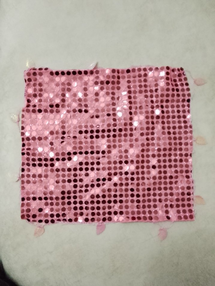 Pembe renkli, küçük yansıtıcı noktalarla kaplı parlak yüzeye sahip kına mendili. Kına gecenizin yıldızı olmanız için.