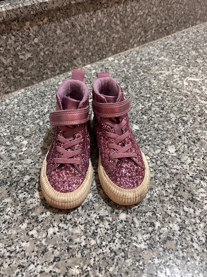 Pembe ışıltılı ve kauçuk tabanlı kız spor ayakkabısı, rock punk tarzında renkli batik desenlerle sokak modasına uygun.