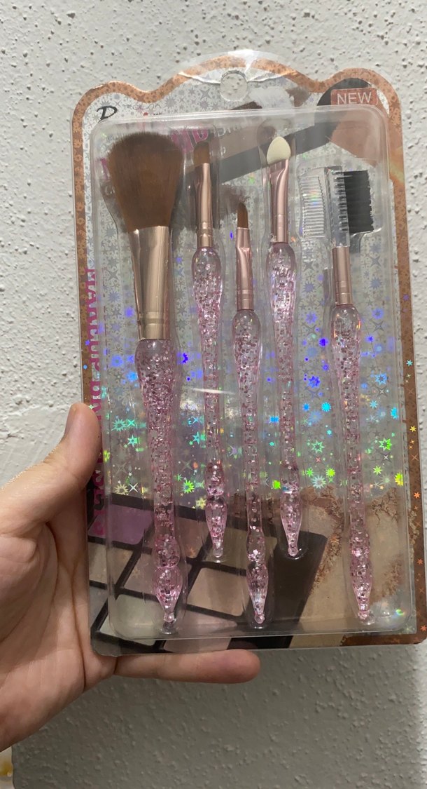 Işıltılı, şeffaf pembe saplara sahip beş farklı makyaj fırçası içeren set. Çeşitli fırça tipleriyle makyaj uygulaması sağlar. ✨