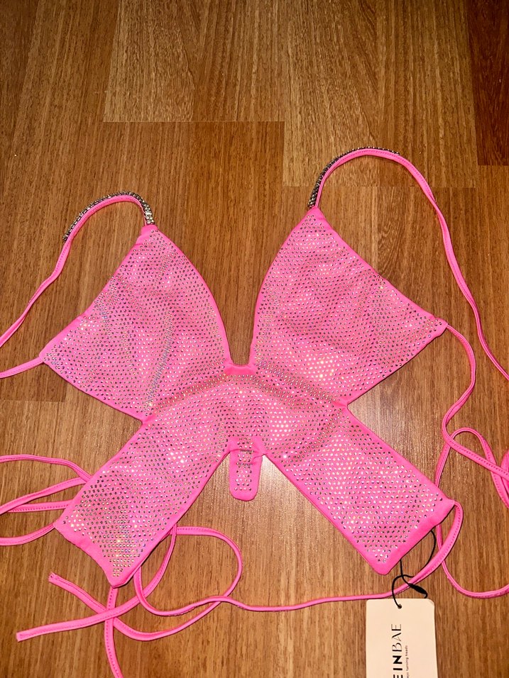 Pembe Parlak Mini Bikini Üstü Fiyonklu shein
