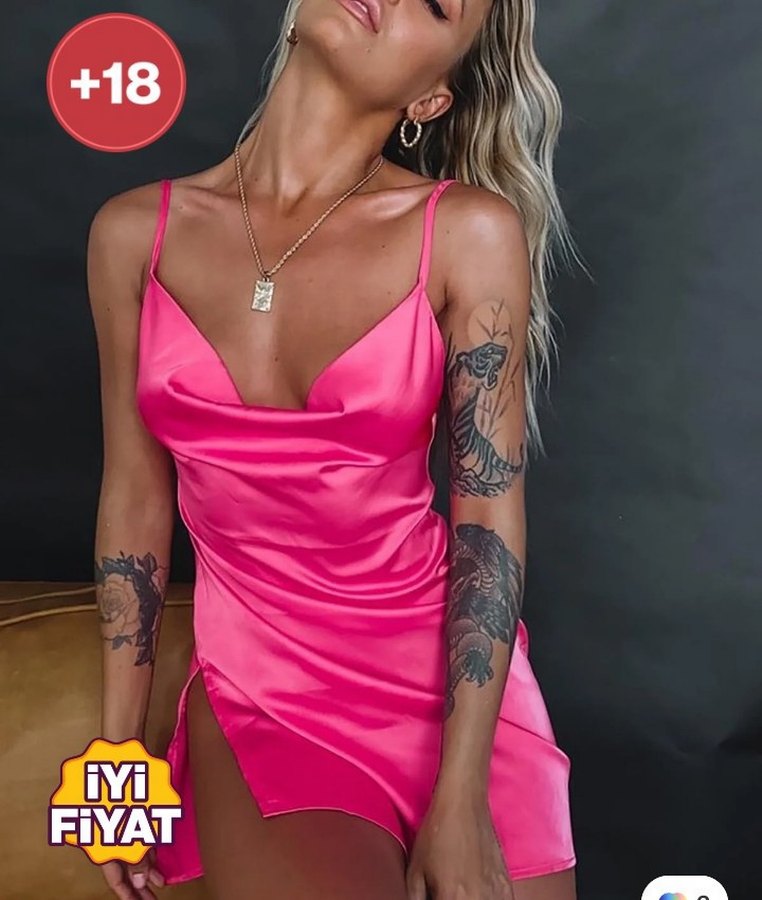 Pembe Parlak Mini Elbise