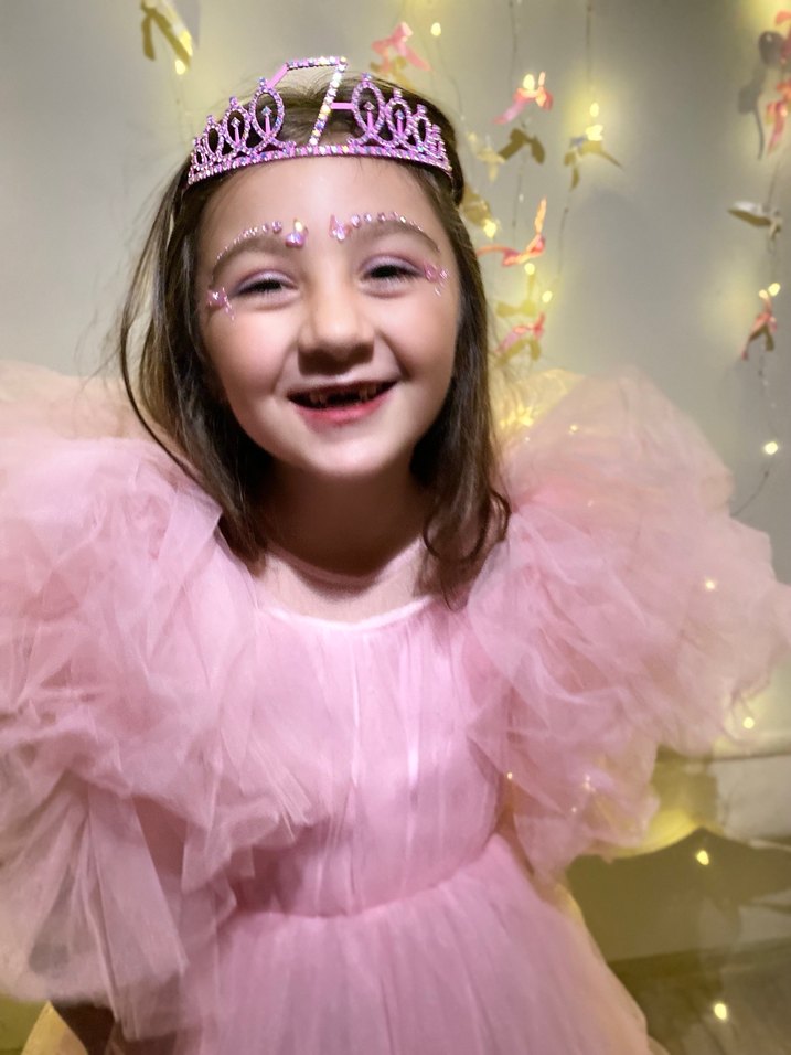 Pembe Parlak Nakışlı Kız Çocuk Abiye Elbise