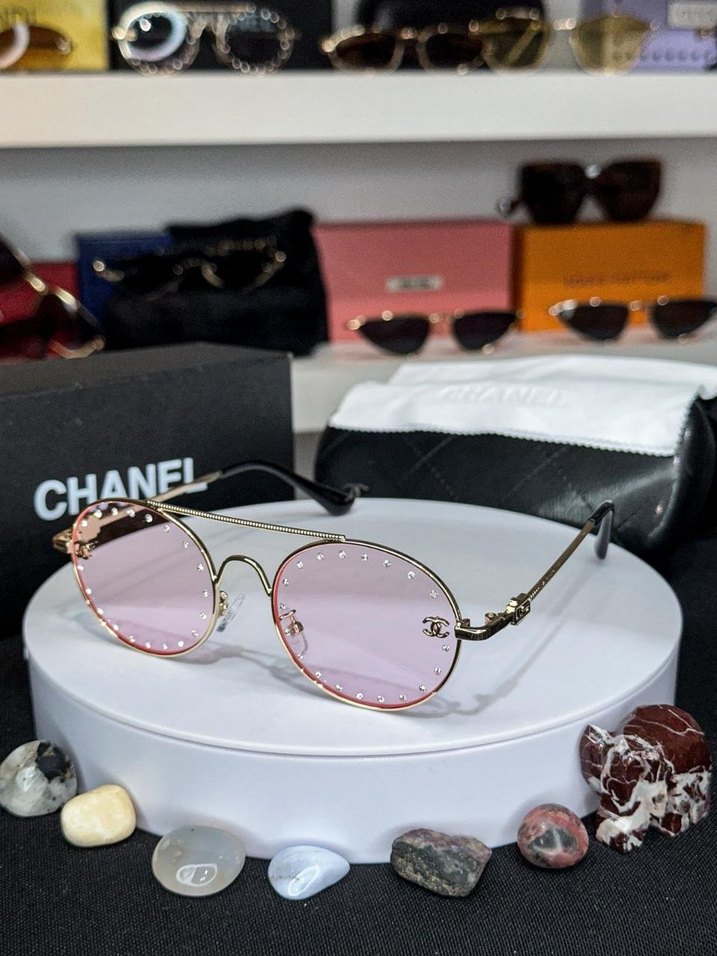 Pembe Parlak Payetli Chanel Kadın Güneş Gözlüğü