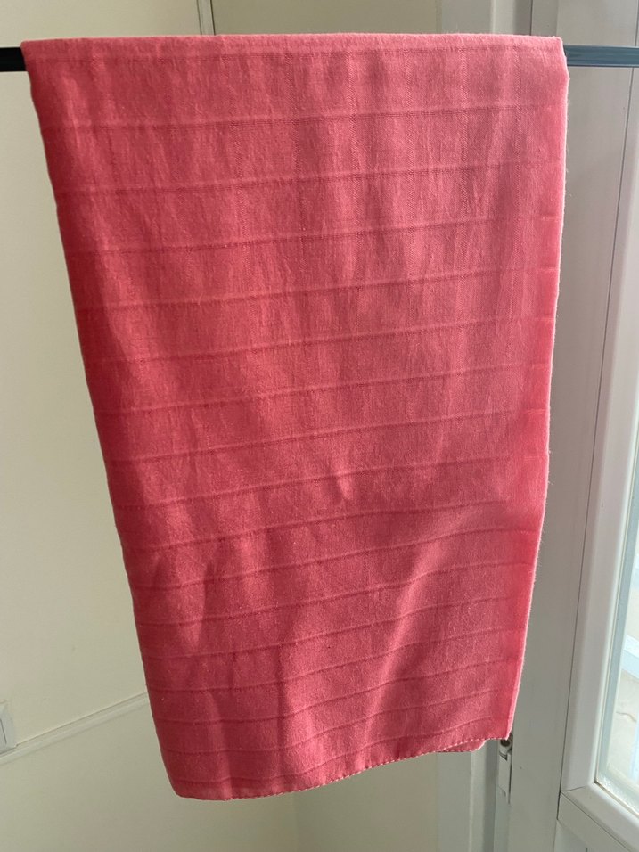 Kadın şalı, parlak pembe sentetik kumaştan olup pliseli detaylara sahiptir, bohem tarz ve athleisure havası sunar. ✨