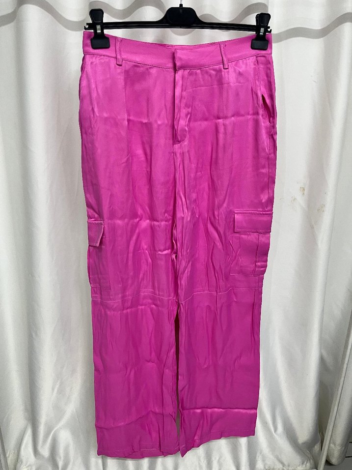 L beden paketiyle gönderilcektir. pembe parlak kumaştan, salaş kesim ve midi boyda, düğme detaylı kadın pantolon. Sokak stiline uygun. ✨ .