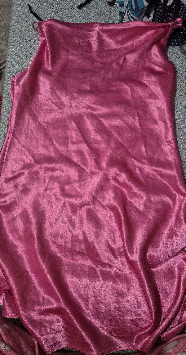 Pembe, parlak ve sırtı açık olan bu vücuda oturan