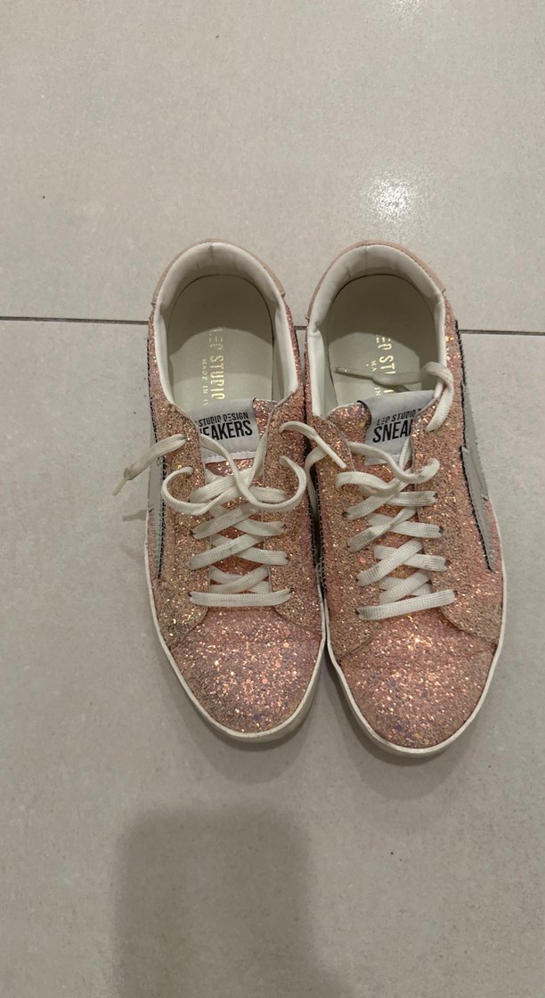 Pembe Parlak Simli Kadın Spor Ayakkabı, İtalyan