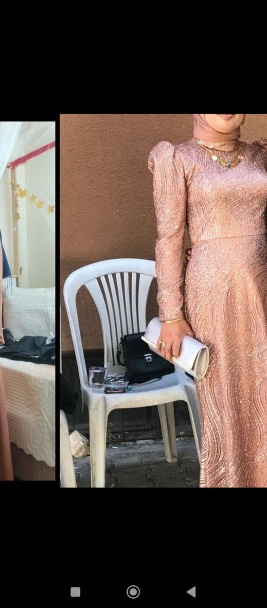Pembe Parlak Uzun Kollu balık Abiye Elbise