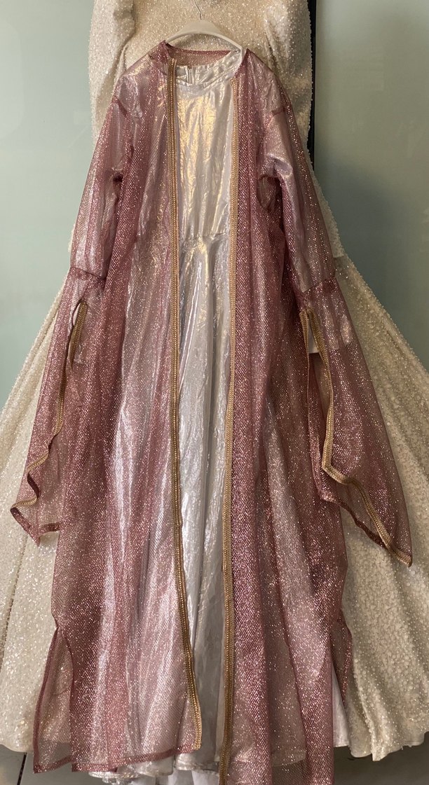 Parlak pembe kumaştan, uzun kollu, yöresel kıyafet
