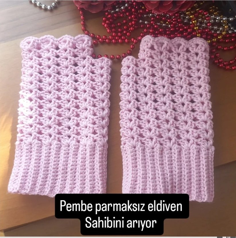 Pembe, örgü, parmaksız eldivenler, bohem tarzda, pastel ve rahat bir görünüm sunar.