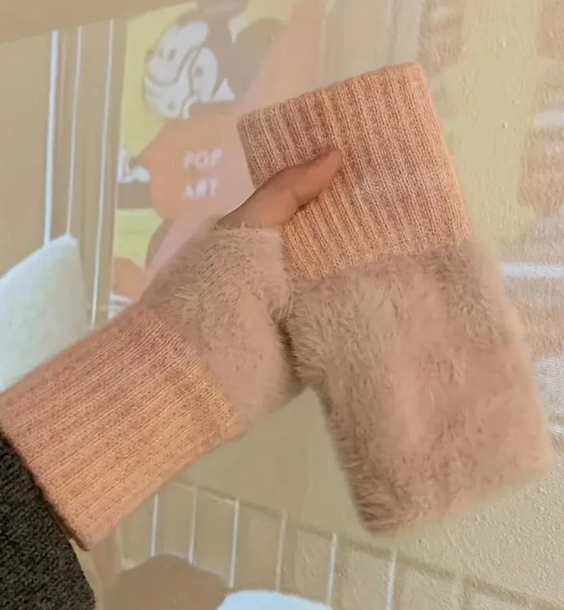 Pastel tonlarda, yumuşak örgü dokusuna sahip bej kadın eldiven, sade ve temel tarzda.