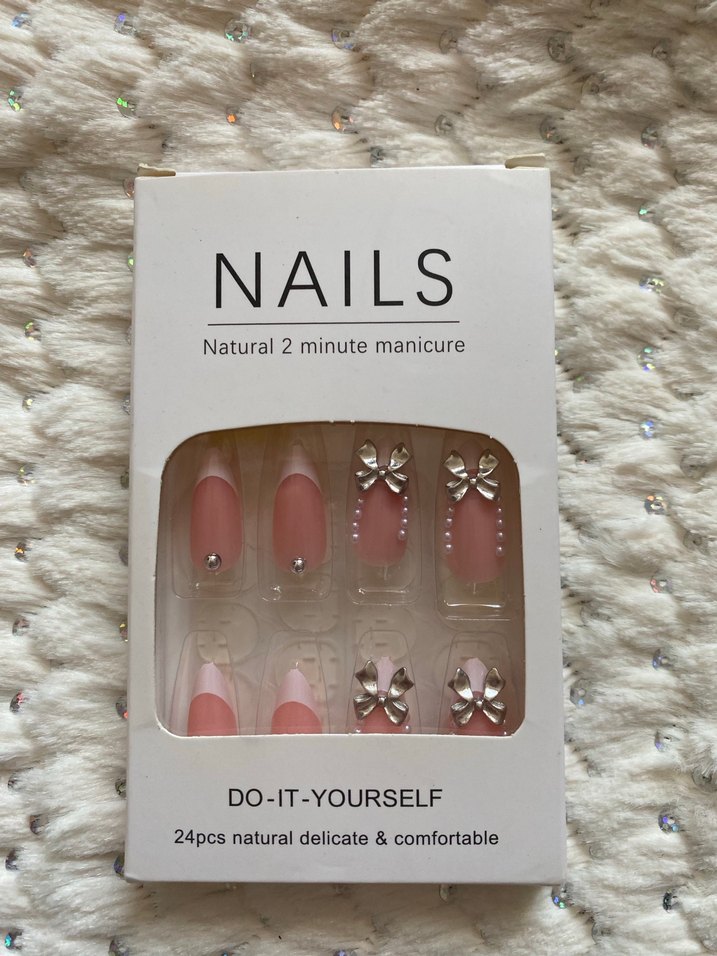 24 adet pastel pembe, doğal görünümlü ve rahat takma tırnak seti içinde törpü ve yapıştırma bandı var tırnakların hepsi süslemeli değil ekrandakiler öyle bu yüzden fiyatını düşük yazdım maddi sıkıntısı olan varsa 100 e de verebilirim