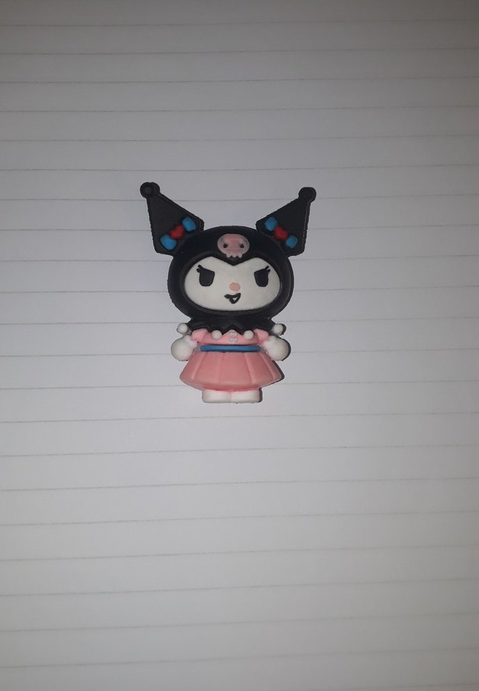 Bu aksiyon figürü, renkli noktalarla süslenmiş siyah başlık ve pastel pembe kıyafete sahip eğlenceli ve sevimli bir tasarıma sahiptir.