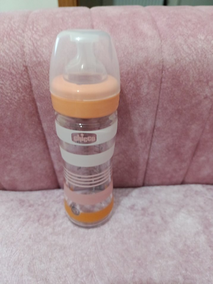 Chicco marka, pastel pembe renkte, ölçü işaretli ve yumuşak emzikli bebek biberonu. Koruyucu kapağı mevcuttur. kapağın da deforme var ama hiç kullanmadı uygulama üzerinden almıştım deneme amaçlı kullanmaya çalıştım ama bebeğim hiç sevmedi ondan dolayı hiç kullanmadık.Aldigim zaman da kutusuzdu.