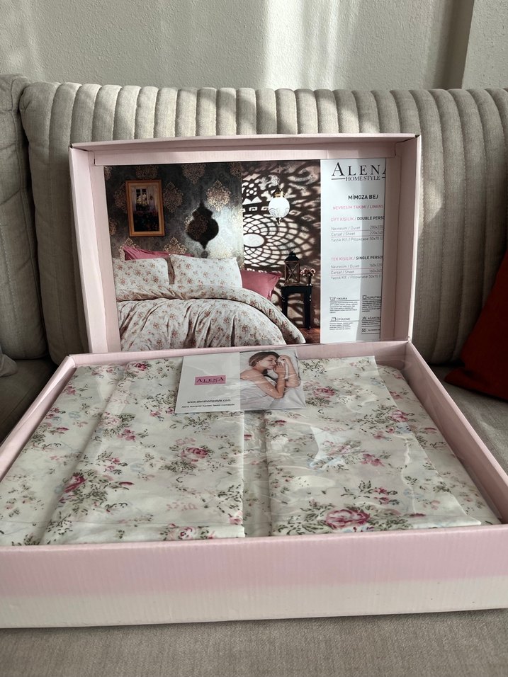 Pembe pastel tonlarda, çiçek baskılı nevresim ve çarşaf takımı, yatak odanıza yumuşak ve rahat bir hava katıyor.