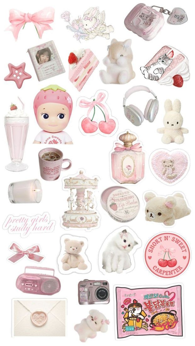 Pembe Pastel Dantel Desenli Retro sticker seti - Görsel 1